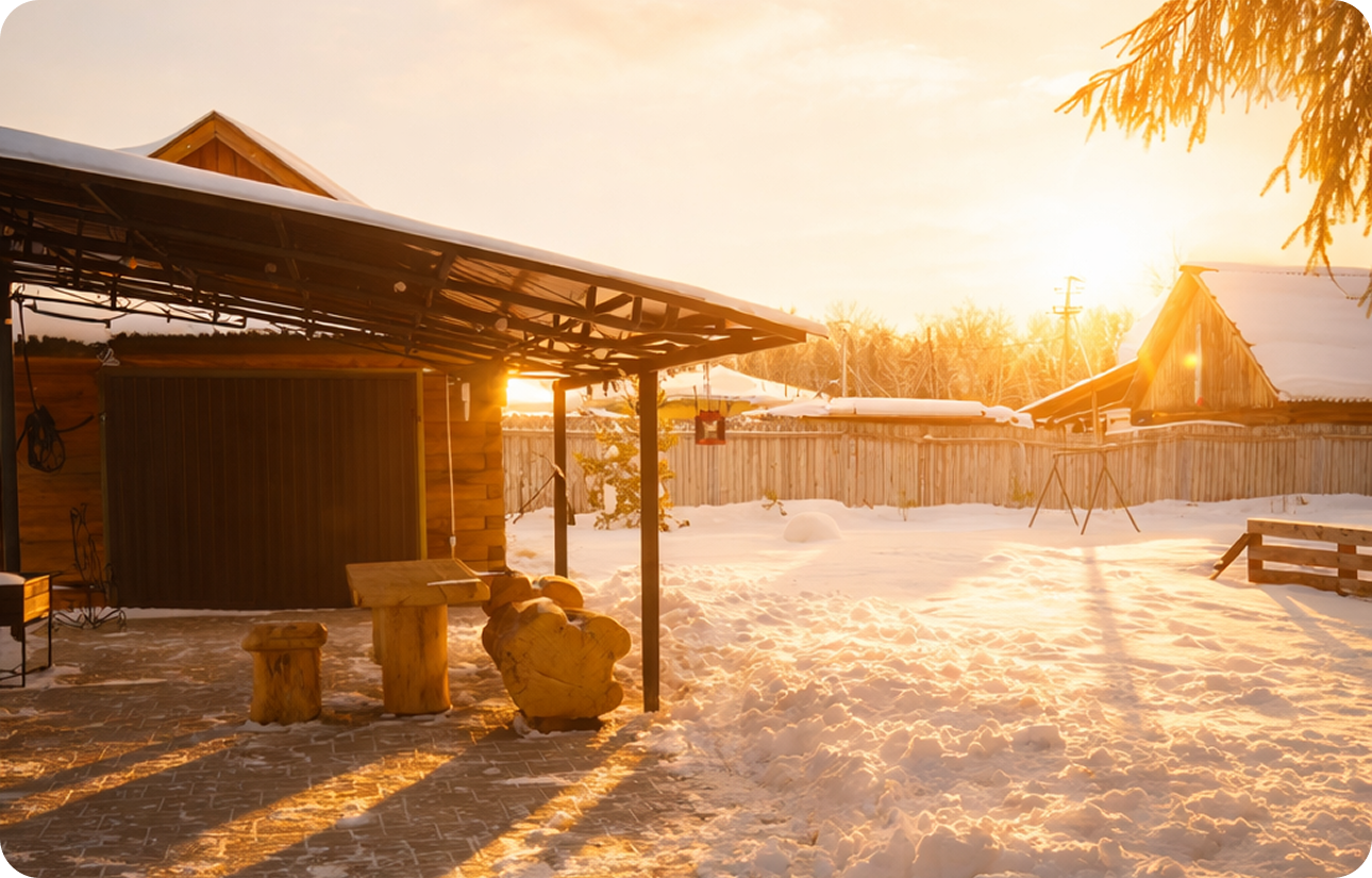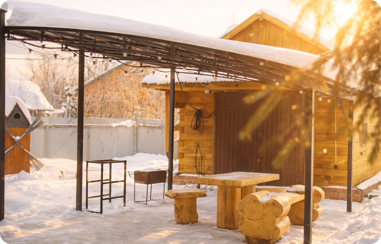 Полная приватность на закрытой территории без соседей — только вы, лес и река. Наслаждайтесь природой без посторонних взглядов. Режим тишины с 22:00 до 09:00 гарантирует глубокий отдых.